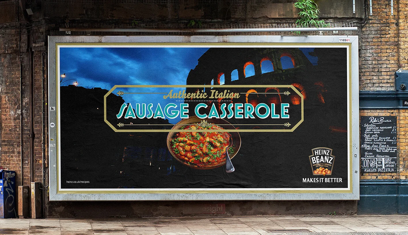 The ‘Makes it spookier’ ad is a quick reactive ad thought up by the talented art director, Oli Short. We had just a few hours to create a fun Halloween reactive print/digital ad. I used the Heinz ‘Keystone’ to house the headline message. This minimised elements letting the image do the story telling, but letting the ‘Keystone’ do the branding and messaging.